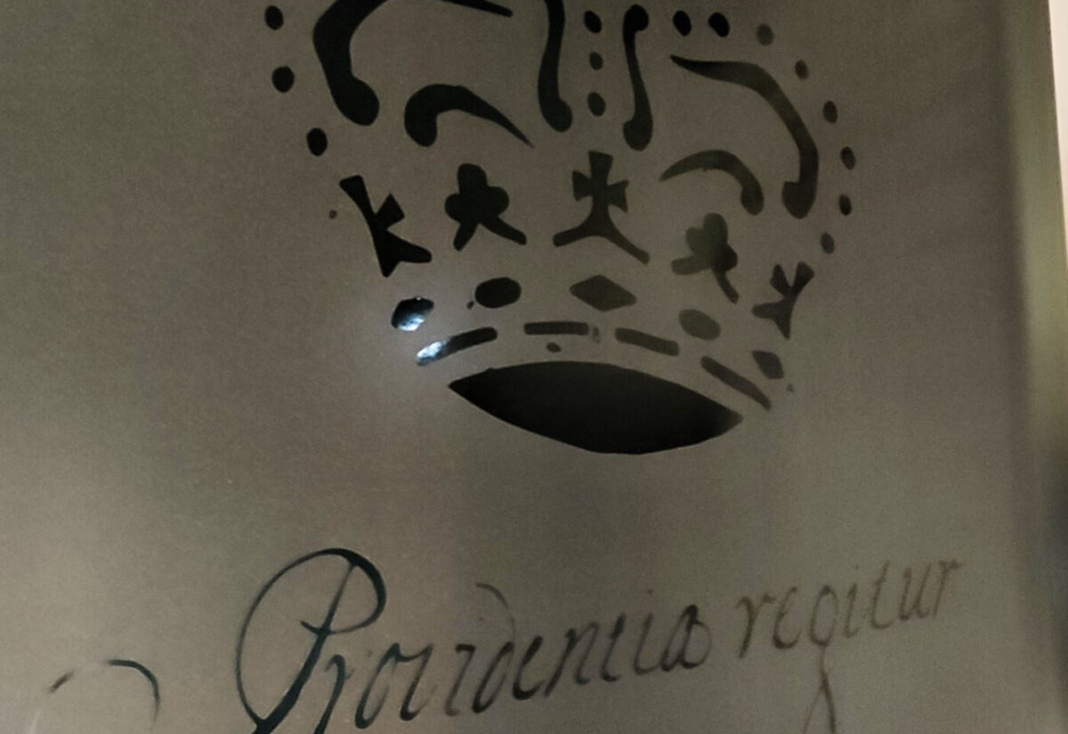 Estamos agora a concluir esta série de conteúdos digitais que abordam os vários componentes do logo empresarial da Real Companhia Velha. Como vimos até aqui, este emblema é composto por quatro elementos distintos: armas reais (clique aqui), a figura da Santa Marta (clique aqui), o dragão (clique aqui) e a inscrição em latim que vamos analisar de seguida, com a seguinte designação “Providentia Regitur”.