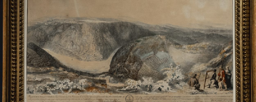 Ao longo do rio Douro, vários obstáculos dificultavam a sua navegação. A demolição desses mesmos obstáculos permitiu a navegabilidade do rio Douro até à fronteira com Espanha, fortalecendo assim a produção do Vinho do Porto, no Douro Superior. A destruição do Cachão da Valeira foi uma das diversas obras empreendidas pela Companhia, tendo decorrido entre 1780 e 1792. A aguarela em questão, encontra-se no quarto núcleo expositivo patente do nosso Museu, no qual são apresentadas as diversas obras públicas levadas a cabo pela Real Companhia Velha.